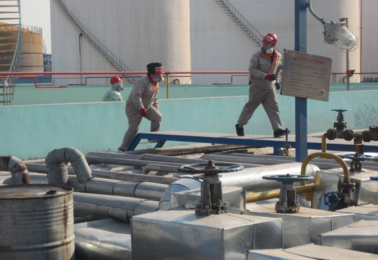 為檢驗(yàn)儲罐冒油事故應(yīng)急預(yù)案的可行性和可操作性,檢驗(yàn)現(xiàn)場操作人員對應(yīng)急事件的反應(yīng)和處理能力,2014年1月22日下午,運(yùn)行三部在純苯罐區(qū)組織了儲罐冒油事故應(yīng)急演練。公司安全副總劉立新到現(xiàn)場進(jìn)行指導(dǎo),運(yùn)行三部副經(jīng)理張長明帶領(lǐng)部門員工參加此次演練活動(dòng)。