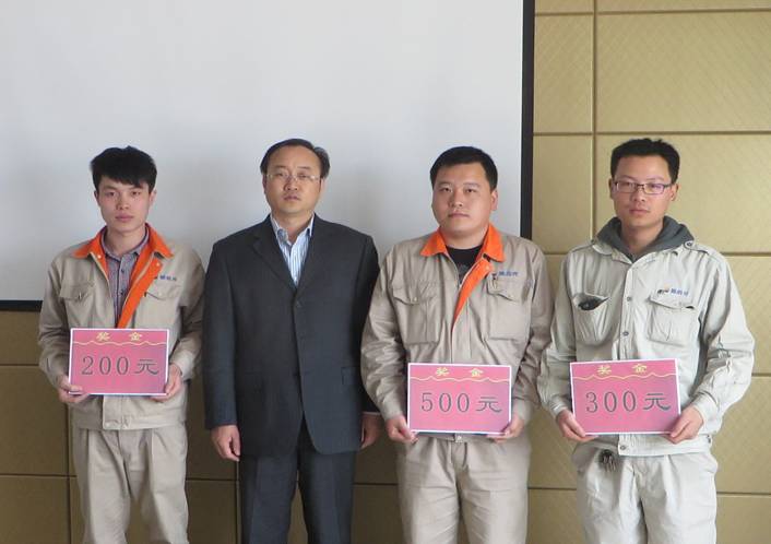 匯報結(jié)束后,根據(jù)前期合理化建議管理小組評選出的優(yōu)秀合理化建議,分別對一、二、三等獎員工進(jìn)行獎勵。