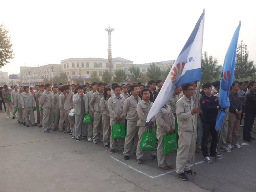 當(dāng)天早上6點(diǎn)50分,早早就有很多參加大會的職工趕到了集合地點(diǎn),徒步隊(duì)伍集合完畢、分發(fā)紀(jì)念品后,隊(duì)伍由兩名旗手帶到了指定的出發(fā)地點(diǎn)。7點(diǎn)30分組織方廣播完注意事項(xiàng)之后,由園區(qū)各界幾千人參加的徒步大會準(zhǔn)時開始。
