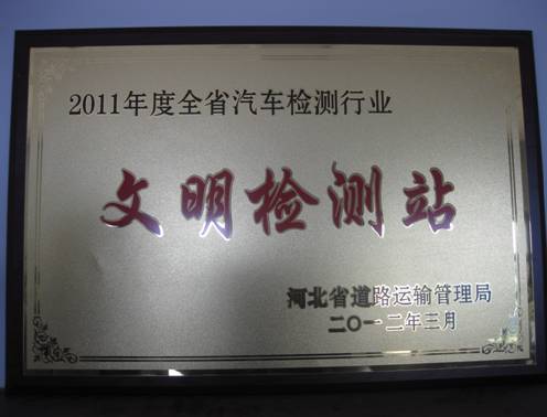 近日,臨港華誠必達(dá)汽車綜合性能檢測(cè)有限公司被河北省道路運(yùn)輸管理局授予2011年全省汽車檢測(cè)行業(yè)“文明檢測(cè)站”榮譽(yù)稱號(hào)。