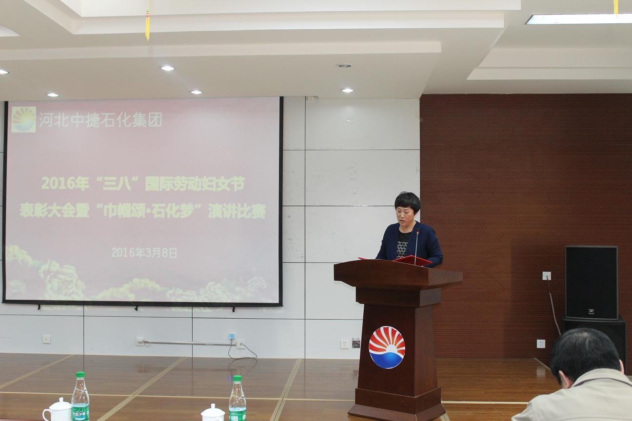 3月8日,是國際勞動婦女節(jié),為了讓公司的女工度過一個輕松快樂的“三?八”婦女節(jié),同時表彰先進(jìn)女工,河北中捷石化集團(tuán)2016年“三八”婦女節(jié)表彰大會暨“巾幗頌?石化夢”演講比賽于3月8日下午隆重舉行,集團(tuán)公司及各所屬單位領(lǐng)導(dǎo)、嘉賓評委、員工代表共計70余人參加了此次會議。