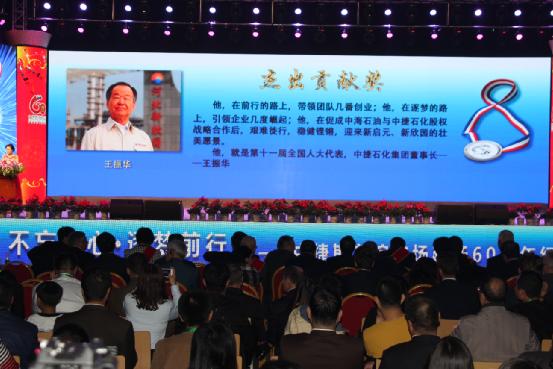 2016年10月15日晚,中捷友誼農(nóng)場建場60周年紀(jì)念表彰大會在青少年文化中心隆重舉行。會上,中捷產(chǎn)業(yè)園區(qū)黨委書記、管委會主任、中捷斯友誼農(nóng)場場長呂振華宣讀了《關(guān)于表彰建場60周年獲獎人物的決定》,一共有38人受到表彰。中捷石化集團(tuán)董事長王振華榮獲“杰出貢獻(xiàn)者”稱號并接受表彰。
