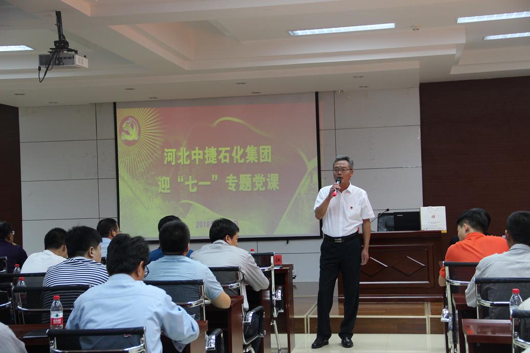 6月29日下午,河北中捷石化集團(tuán)黨委在科研樓六樓會(huì)議室舉辦迎“七一”專題黨課學(xué)習(xí)活動(dòng),集團(tuán)總經(jīng)理于國(guó)臣,黨委副書(shū)記朱振江,集團(tuán)各黨支部書(shū)記、黨員及積極分子代表共計(jì)80余人參加。此次黨課學(xué)習(xí)特邀中捷產(chǎn)業(yè)園區(qū)宣傳部副部長(zhǎng)劉金林主講。