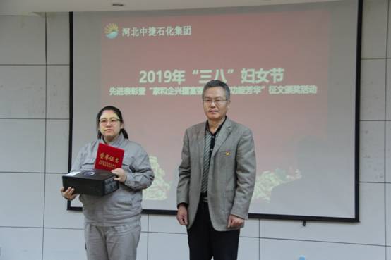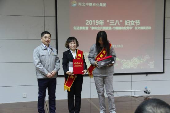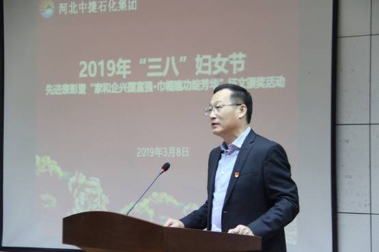 3月8日上午,河北中捷石化集團(tuán)在科研樓六樓會(huì)議室組織舉辦了2019年“三八”婦女節(jié)先進(jìn)表彰暨“家和企興國富強(qiáng)?巾幗建功綻芳華”征文頒獎(jiǎng)活動(dòng)。集團(tuán)公司黨政領(lǐng)導(dǎo),各單位黨(總)支部領(lǐng)導(dǎo)、先進(jìn)女職工、征文獲獎(jiǎng)?wù)呒芭ご淼?0余人參加活動(dòng)。中捷產(chǎn)業(yè)園區(qū)宣傳部劉金林部長出席了本次活動(dòng)。