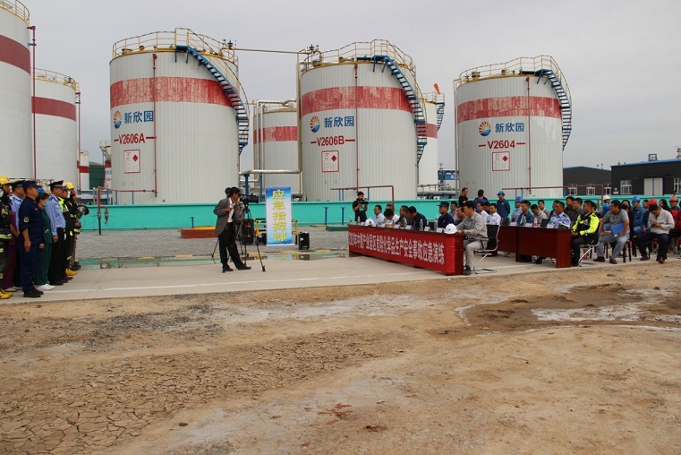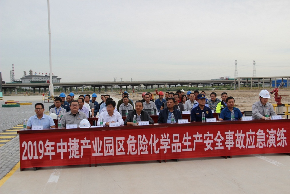為提高園區(qū)應(yīng)急管理水平,檢驗企業(yè)應(yīng)急處置能力,評估完善企業(yè)和政府部門之間的應(yīng)急救援力量協(xié)同能力,9月19日上午,園區(qū)安委辦組織相關(guān)部門與新欣園公司共同開展2019年度全區(qū)危險化學(xué)品生產(chǎn)安全事故應(yīng)急救援演練。園區(qū)領(lǐng)導(dǎo)于長池、李鐘甜,新欣園公司總經(jīng)理王政、安全總監(jiān)李冬峰及相關(guān)政府部門代表出席活動,活動邀請中海油中捷石化、新啟元公司等10家危化企業(yè)代表觀摩學(xué)習(xí)了此次演練活動。
