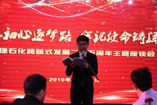 專題片播放完畢后,集團公司員工朱鑫林進行了《心緣文集》朗誦——《敬禮那些難忘的日子》,在場領導重溫了董事長進入中捷石化后的一路艱辛,也深刻感受到了一位軍人出身領航員的堅韌毅力。