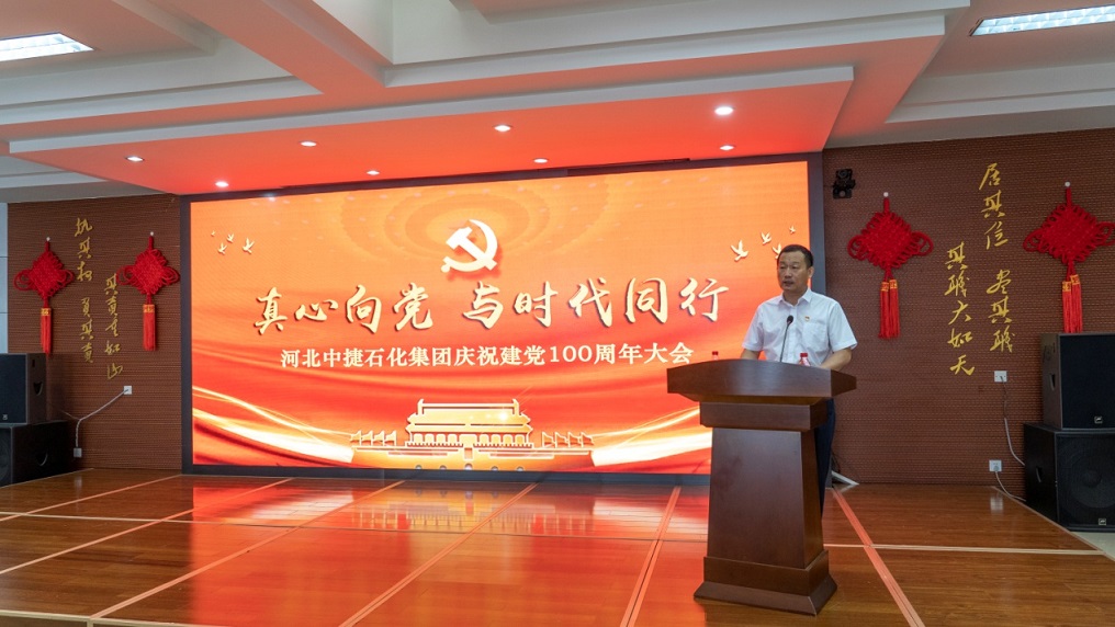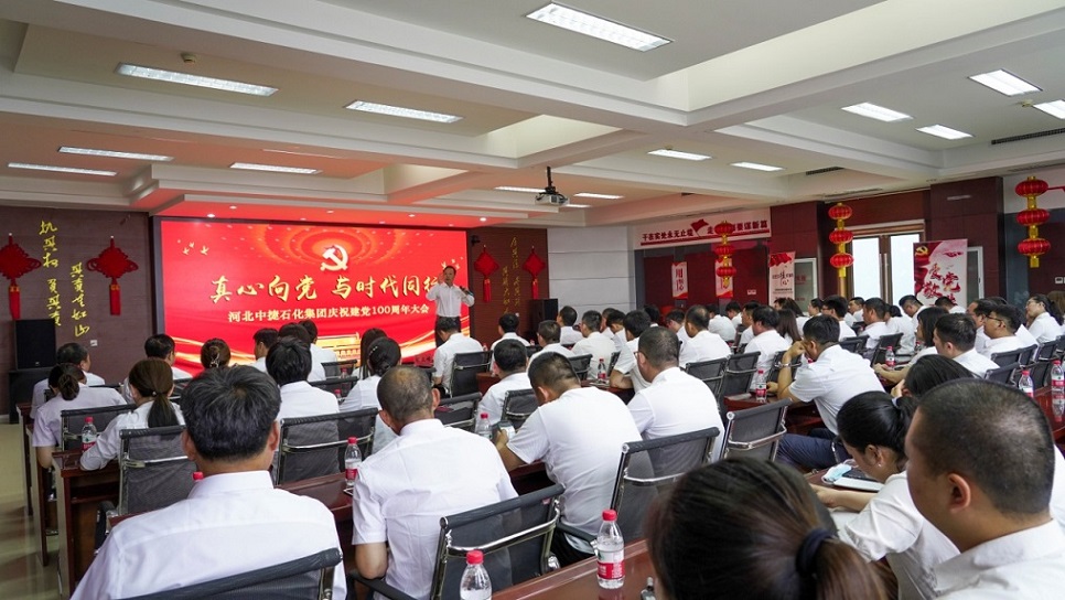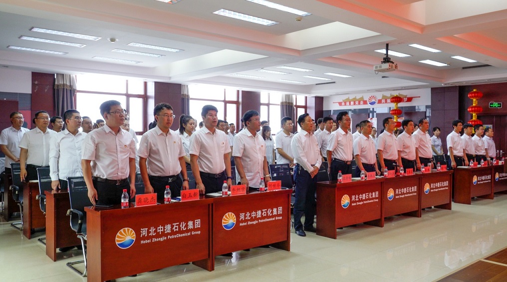 集團公司訊 為熱烈慶祝中國共產(chǎn)黨成立100周年,進(jìn)一步激發(fā)基層黨組織活力,增強黨員干部的光榮感、使命感,大力營造積極向上的氛圍,弘揚正氣。同時,結(jié)合上級黨委關(guān)于黨史學(xué)習(xí)教育的要求部署和《關(guān)于在集團開展黨史學(xué)習(xí)教育的實施意見》,為把學(xué)習(xí)習(xí)近平新時代中國特色社會主義思想貫穿始終,把學(xué)史明理、學(xué)史增信、學(xué)史崇德、學(xué)史力行貫穿始終,把學(xué)黨史、悟思想、辦實事、開新局貫穿始終,進(jìn)一步勉勵廣大黨員不忘初心,牢記使命,繼承和發(fā)揚黨的優(yōu)良傳統(tǒng),推動集團各項事業(yè)持續(xù)、穩(wěn)定、創(chuàng)新、發(fā)展,6月28日,河北中捷石化集團黨委組織召開了慶祝建黨100周年大會。原中捷企業(yè)黨工委書記沈?qū)W明同志,集團黨委書記于國臣同志,集團黨委副書記、總經(jīng)理喬樹華同志,以及各所屬黨支部書記,各支部黨員代表共計70余人參加了此次活動。