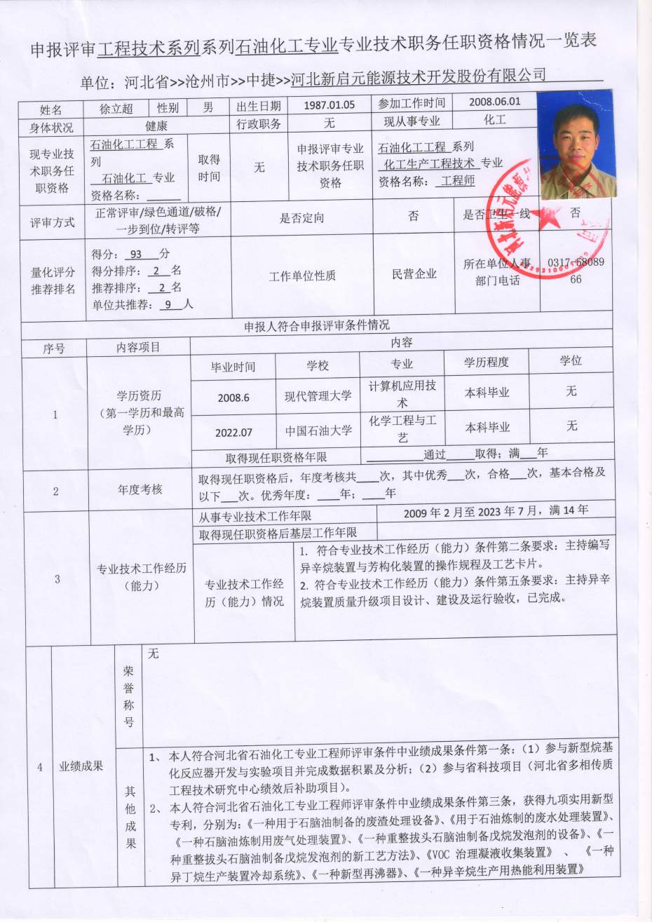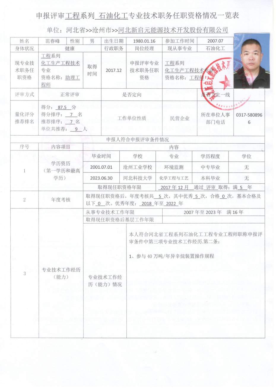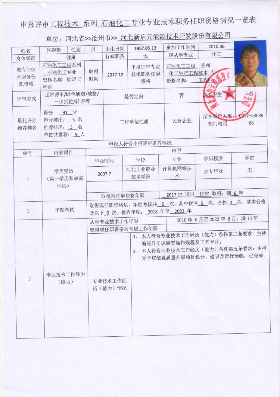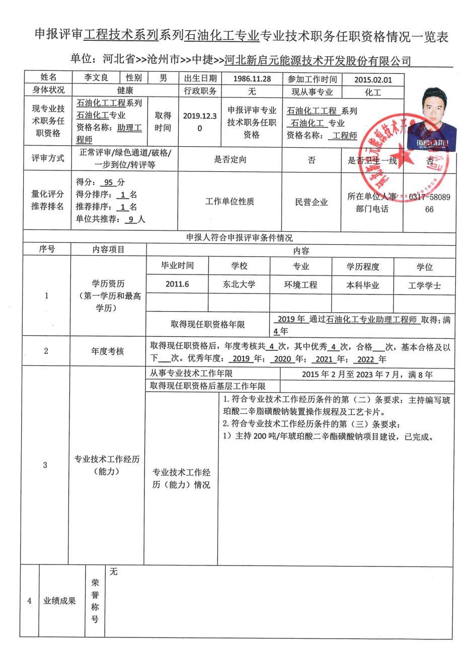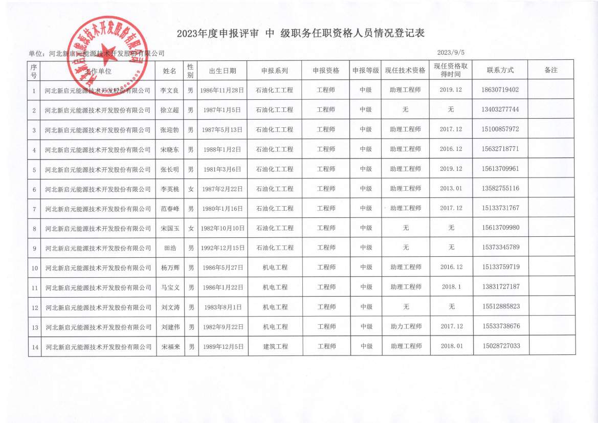 2023年河北新啟元申報中級職稱人員信息公示