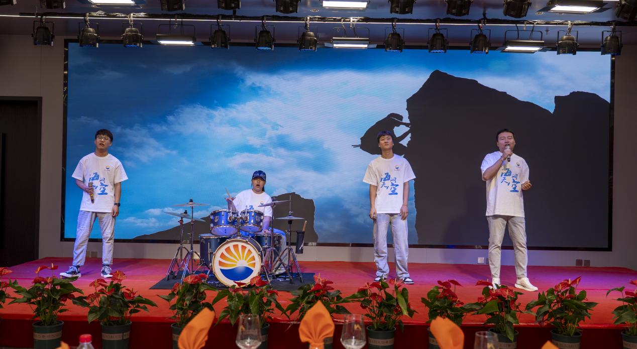 各單位選送的節(jié)目飽含深情與力量,為慶典增添了濃厚的喜慶氛圍。演出在《振聲華章——致敬中捷石化建廠50周年》的深情舞蹈中拉開帷幕,舞者用優(yōu)美的肢體語言詮釋了對(duì)企業(yè)的無限熱愛與崇高禮贊;詩朗誦《同一首歌》與架子鼓伴唱的《海闊天空》交相輝映,前者以激昂文字回溯創(chuàng)業(yè)艱辛,后者以澎湃旋律展望廣闊未來;《璀璨冒險(xiǎn)人》《刀劍如夢(mèng)》等節(jié)目,生動(dòng)展現(xiàn)了中捷石化人勇于追夢(mèng)、開拓進(jìn)取的豪邁氣概;新啟元公司管理團(tuán)隊(duì)合唱的《團(tuán)結(jié)就是力量》鏗鏘有力,新欣園公司管理團(tuán)隊(duì)演繹的《明天會(huì)更好》充滿希望,唱出了“志存高遠(yuǎn)向深藍(lán)事不避難是勁帆”的勇者心聲,將現(xiàn)場(chǎng)氣氛推向高潮。