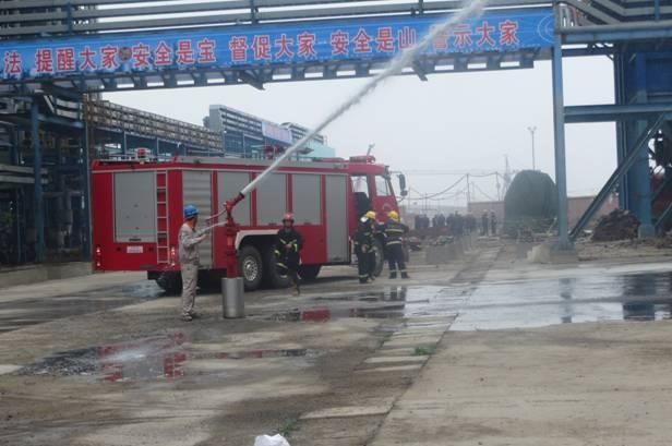 演練選在甲醇裝置廣場(chǎng)處進(jìn)行。在模擬事故現(xiàn)場(chǎng),參加人員分成多個(gè)應(yīng)急小組,人員救援組進(jìn)行人員救助,事故搶險(xiǎn)組進(jìn)行滅火,環(huán)境監(jiān)測(cè)組進(jìn)行環(huán)境監(jiān)測(cè),應(yīng)急疏散組進(jìn)行人員撤離并指揮消防車進(jìn)入事故現(xiàn)場(chǎng),各個(gè)環(huán)節(jié)緊張有序的進(jìn)行。滅火完畢后指揮人員發(fā)布命令,宣布結(jié)束應(yīng)急狀態(tài)。